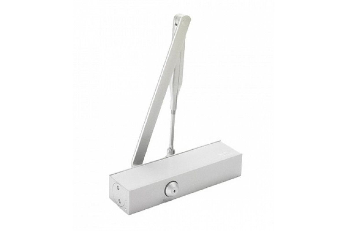 Доводчик дверной со складным рычагом. Предназначен для дверей 850-1250 мм, весом 40-100 кг. Габариты корпуса - 210х55х39 мм. Два клапана на передней панели позволяют регулировать скорость в двух диапазонах (180° – 15°, 15° – 0°). Функция амортизации открывания (защиты от ветра) благодаря наличию встроенного гидравлического ветрового тормоза помогает избежать повреждения двери при резком отрывании. Допустимая температура эксплуатации от -15 до +40° С.