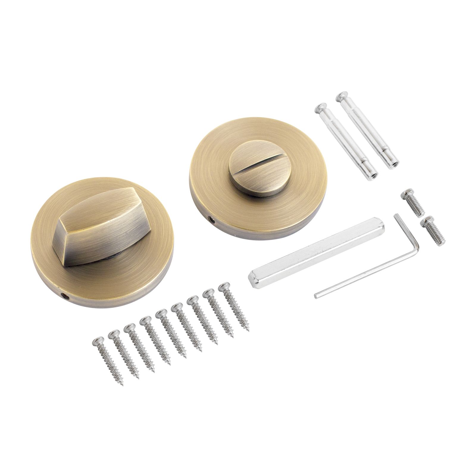 Сантехническая завертка-фиксатор для защелок, замков, задвижек. Материал - алюминиевый сплав, гальваническое покрытие. Размер сечения квадрата - 6 мм, длина - 55 мм. В комплекте стяжки, крепежные шурупы.