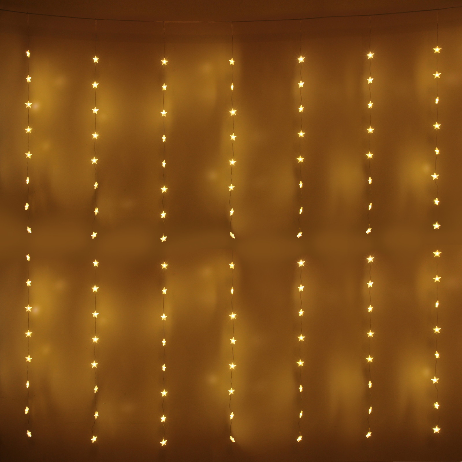 Гирлянда для дома ЗАНАВЕС "Звезды" ш3* в2 м 160 ламп LED, прозр. пров, 8 реж,IP-40, Теплый белый (возможность соединения)