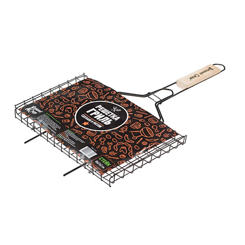 Решетка "Домашний Сундук" «Стейк» предназначена для приготовления пищи на углях, в том числе мяса. Изготовлена из высококачественной стали с пищевым никелированным покрытием. Идеально подходит для мангалов и барбекю. Решетка имеет широкое фиксирующее кольцо на ручке, что обеспечивает надежную фиксацию. Специальная деревянная ручка предохраняет руки от ожогов, а также удобна для обхвата двумя руками, что позволяет легко переворачивать решетку.