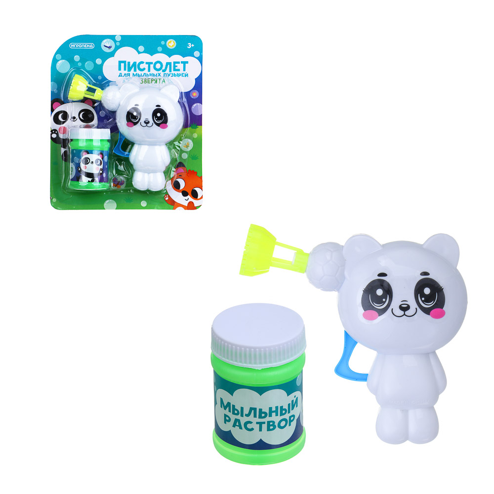 ИГРОЛЕНД Пистолет для выдувания мыльных пузырей, "Зверята", РР, 40мл., мыльн. р-р., 17х4х15см, 3диз.