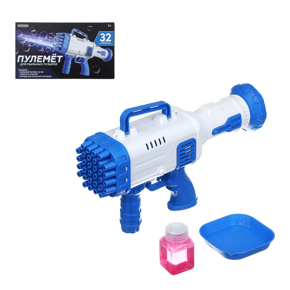 ИГРОЛЕНД Пулемет для мыльных пузырей, PP, 4хАА, 30мл, мыльный р-р, 25.5х7х14.5см, 2 цвета