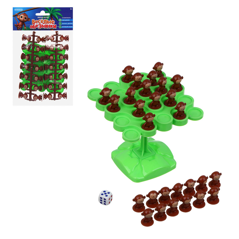 Мини игра на равновесие ИГРОЛЕНД "Веселые обезьянки", 13х22х3 см – это забавное развлечение для детей и взрослых. Комплект включает 28 обезьянок, 1 баланс дерево и 1 игровой кубик. Цель игры – выставлять фигурки на дерево таким образом, чтобы дерево не упало. Увлекательная игра развивает логику, усидчивость и мелкую моторику у детей от 3-х лет. Поможет организовать семейный досуг дома и в дороге, а также отвлечет детей от гаджетов. Все элементы выполнены из полипропилена, прочные, не боятся ударов и падений. 2 дизайна в ассортименте.