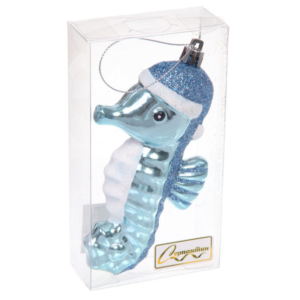 Елочная игрушка "Морской конек" 8*4*14 см, Голубой