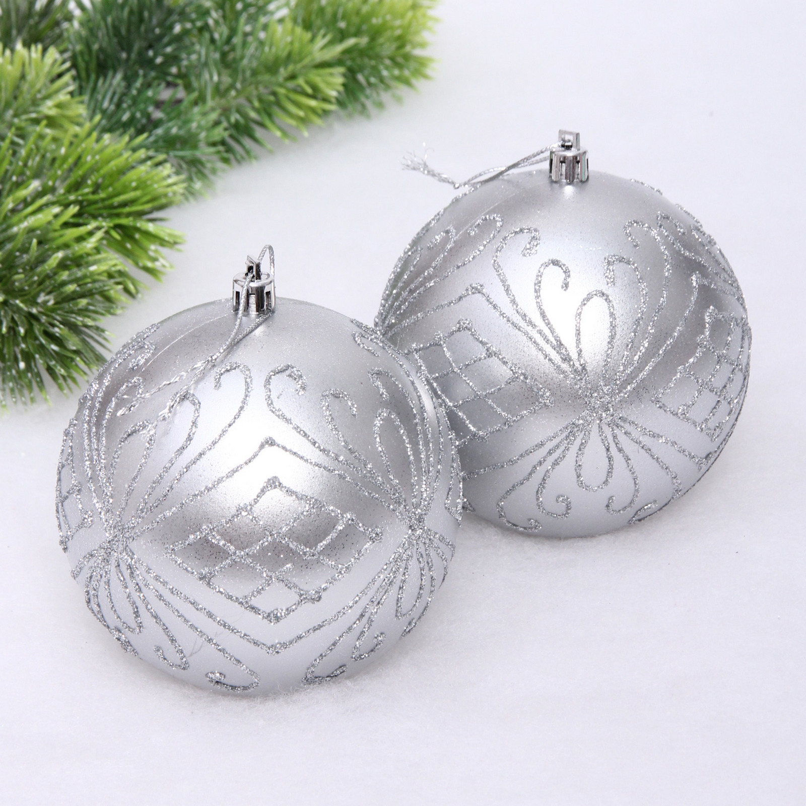 Новогодние шары 10 см (набор 2 шт) "Загадочная мечта", серебро