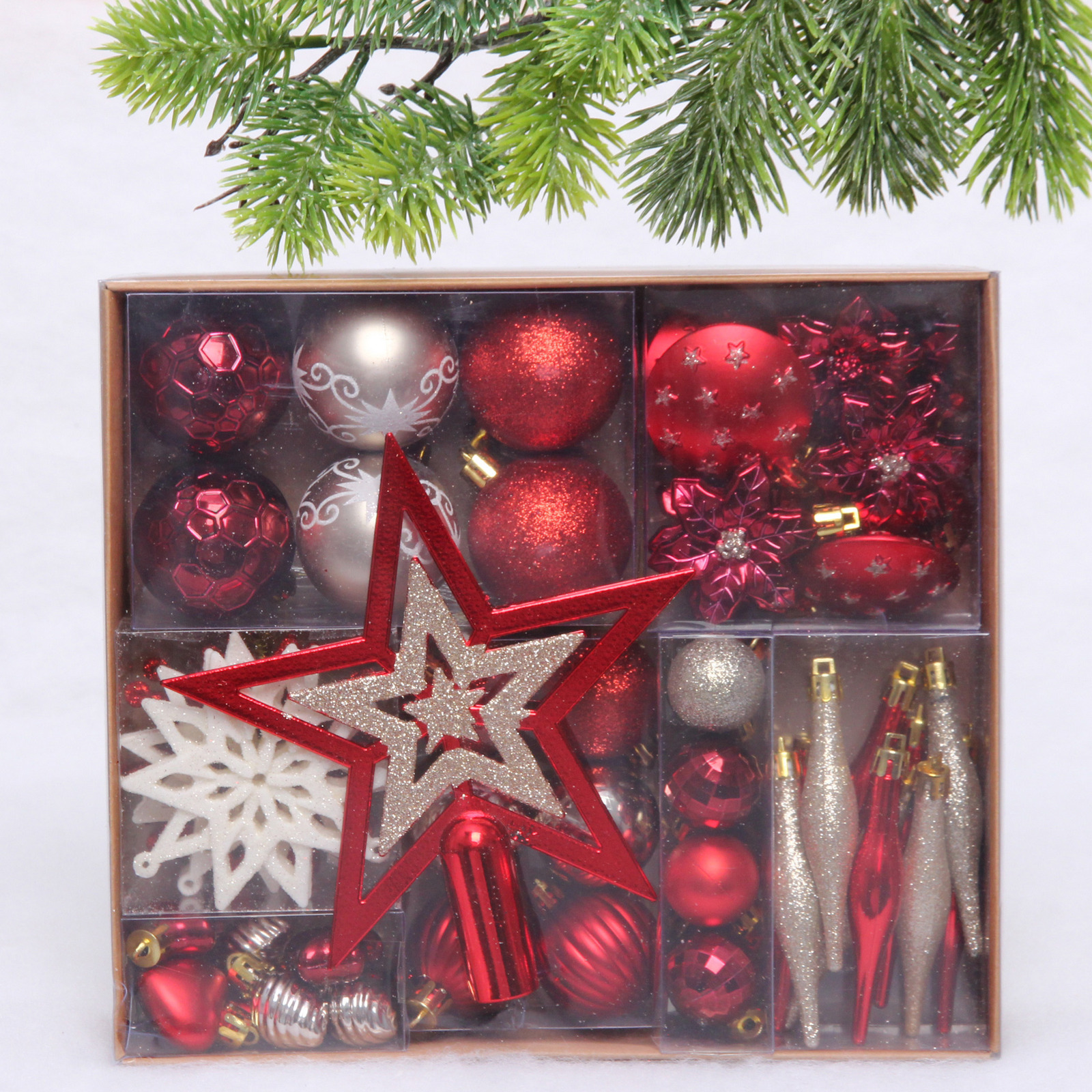 Набор ёлочных украшений "Сказочная зима" 45 предметов, Красный/Шампань