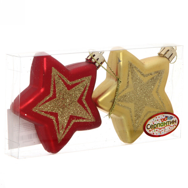 Ёлочные игрушки "Звездочки радужные" 6,5см микс цветов (набор 2шт)