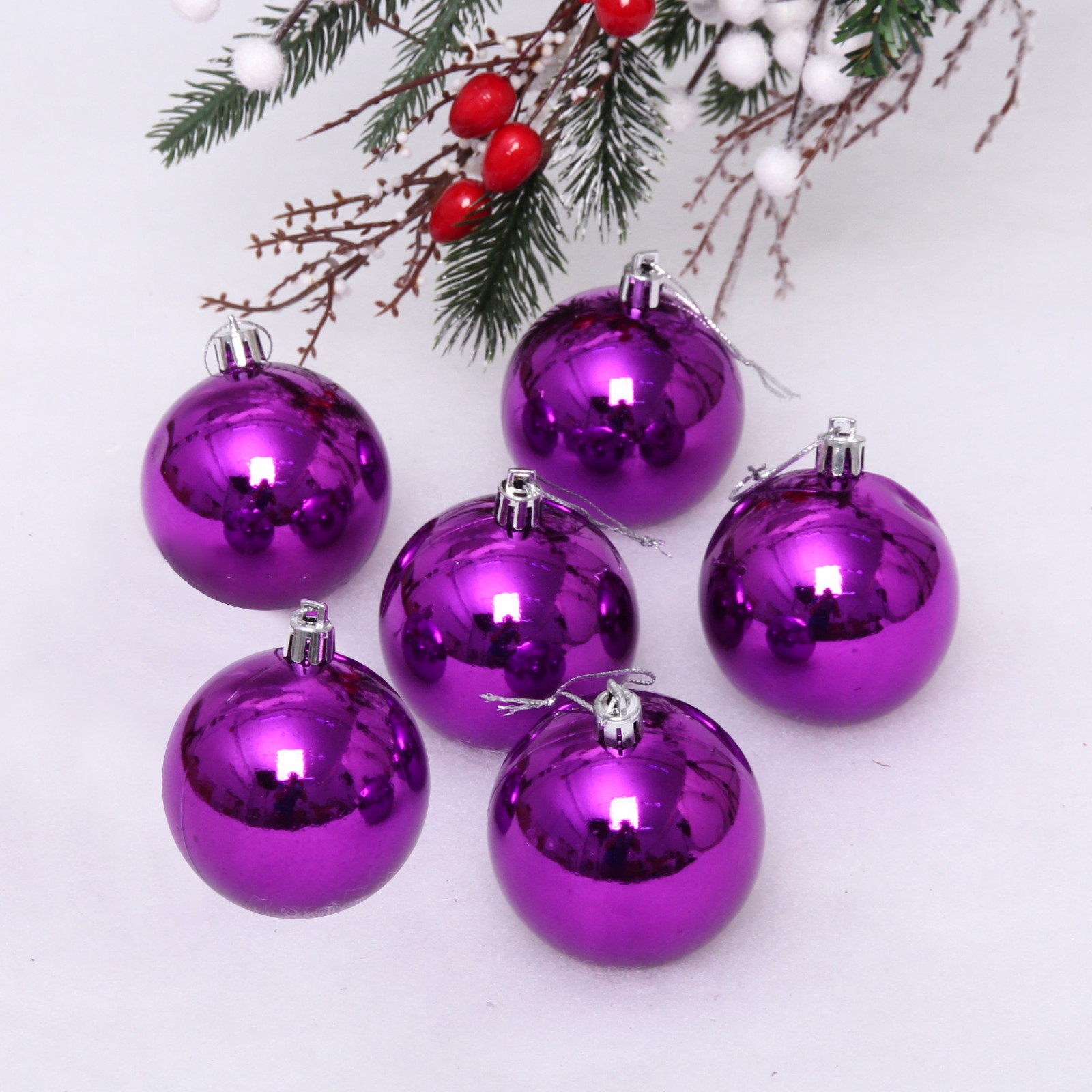 Новогодние шары 6 см (набор 6 шт) "Глянец", Фиолетовый (пакет)