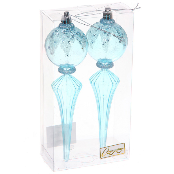 Елочные украшения "Изящный блеск" 5.3*5.3*19 см (набор 2 шт), Голубой