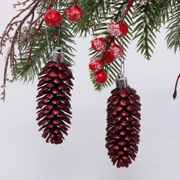 Ёлочные игрушки "Шишки блестящие" 9 см (набор 2 шт), рубин