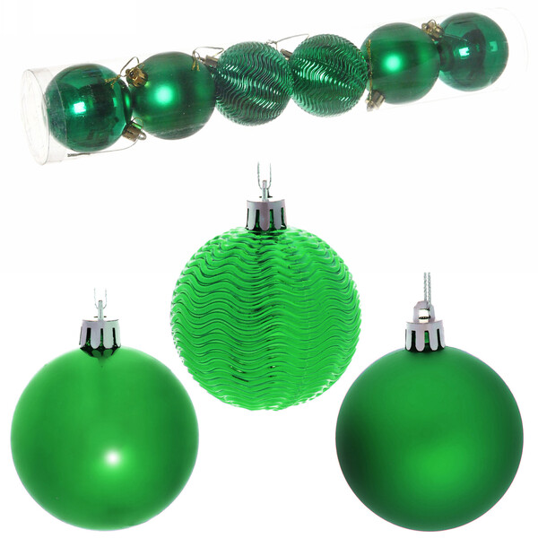 Новогодние шары 6 см (набор 6 шт) "Микс фактур", зеленый