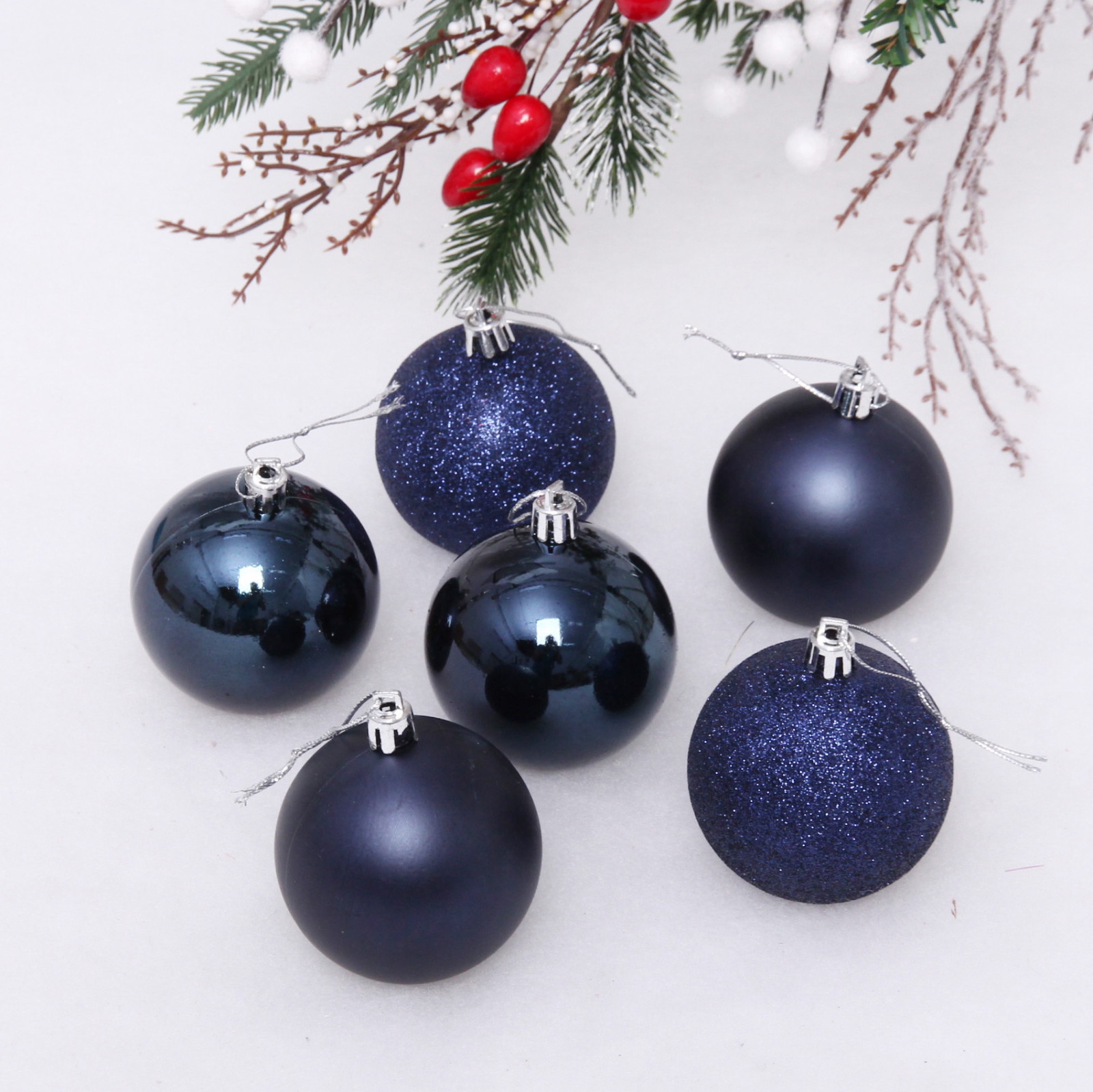 Новогодние шары 6 см (набор 6 шт) "Микс фактур", Синий (пакет)