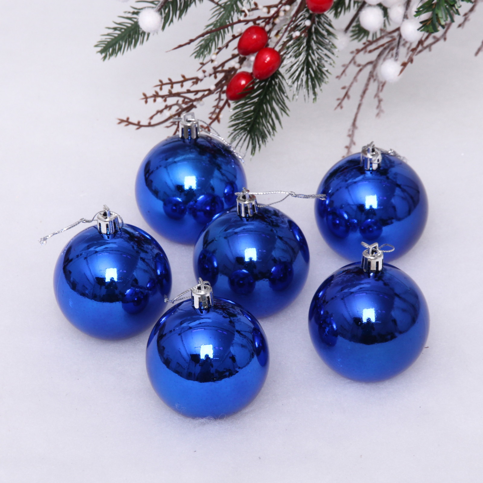 Новогодние шары 6 см (набор 6 шт) "Глянец", Синий (пакет)