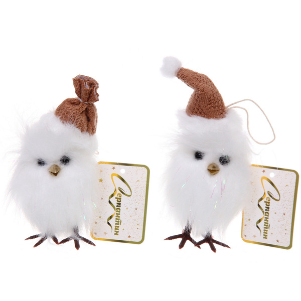 Подвеска "Совушка в зимнем колпачке" 12 см (в ассортименте), Шампань