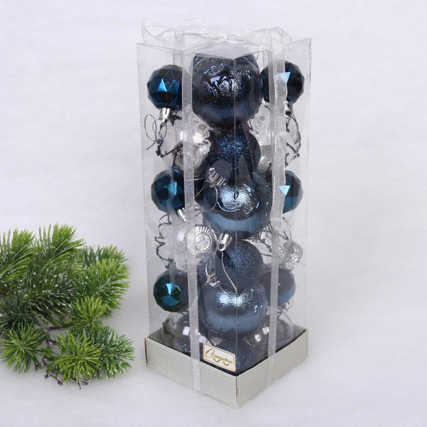 Набор шаров "Winter magic" 6 см + 4 см (24 предмета), Сапфир