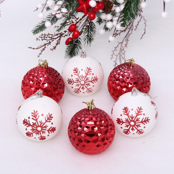 Набор шаров 8 см "Снежное сияние" (в наборе 6 шт), Красный/Белый