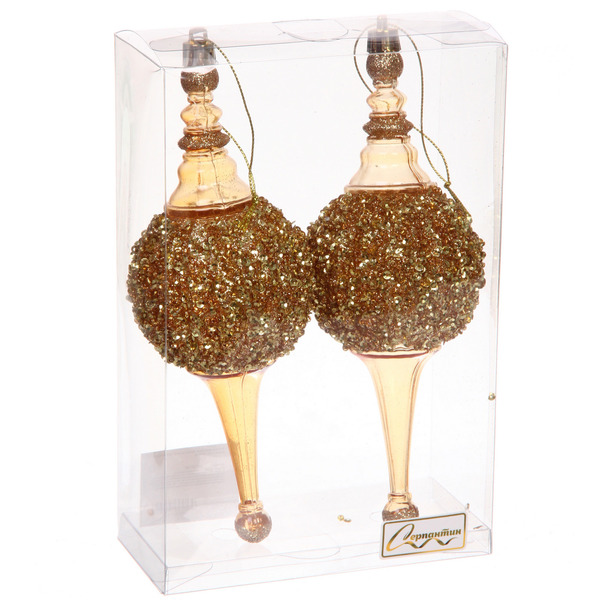 Елочные украшения "Мерцание ночи" 6.5*6.5*19.5 см (набор 2 шт), Золотой
