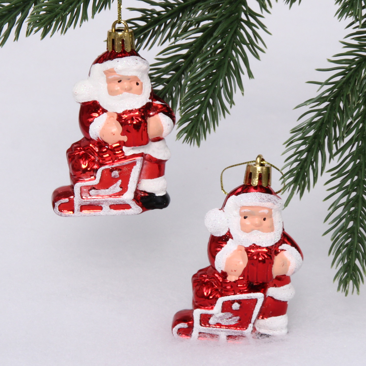 Елочные игрушки "Дед Мороз с подарком" 6,5 см (набор 2 шт), Красный