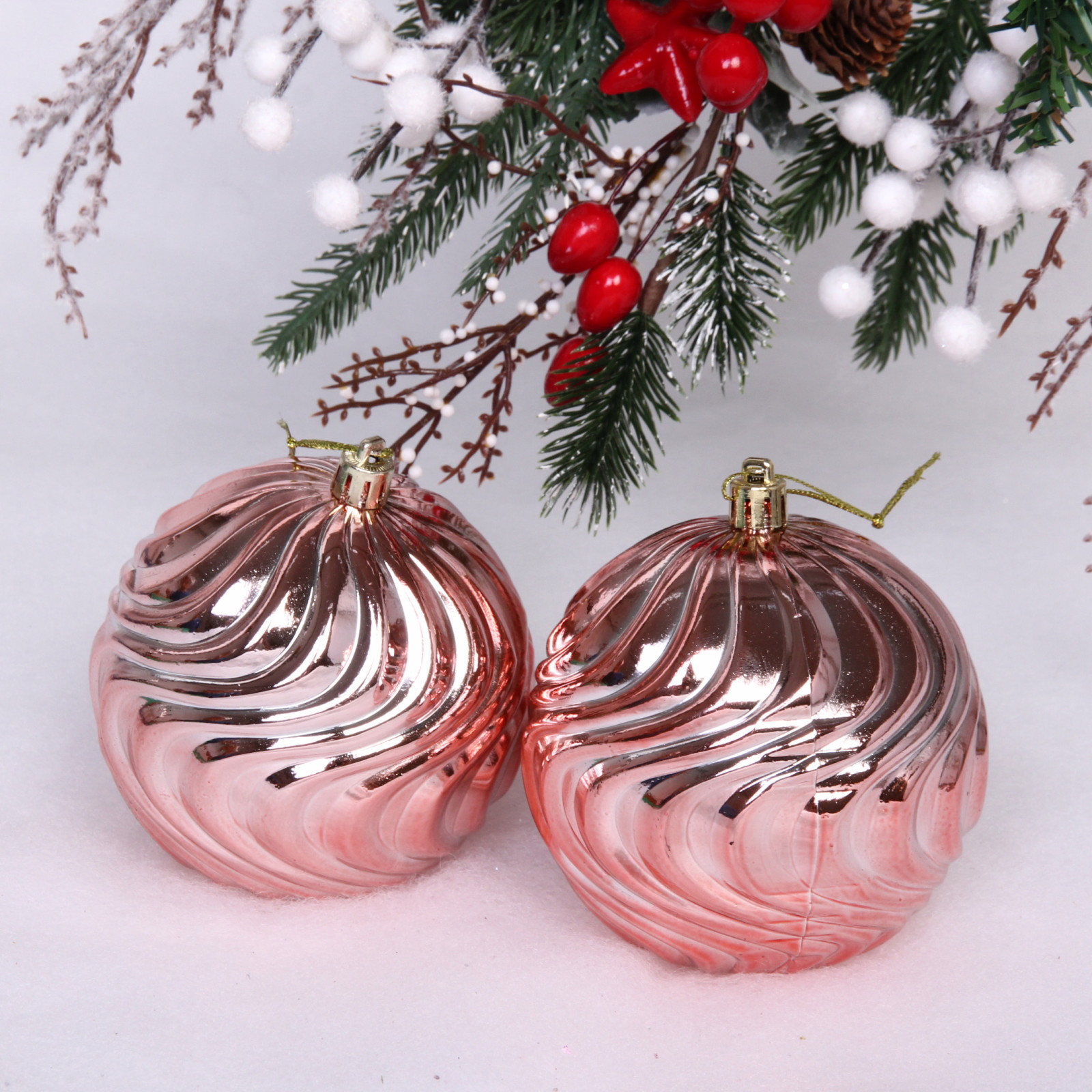 Новогодние шары 10 см (набор 2 шт) "Рельеф", розовое золото