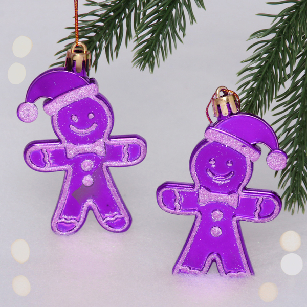 Елочные игрушки "Пряничный человечек" 8 см (набор 2 шт), Фиолетовый