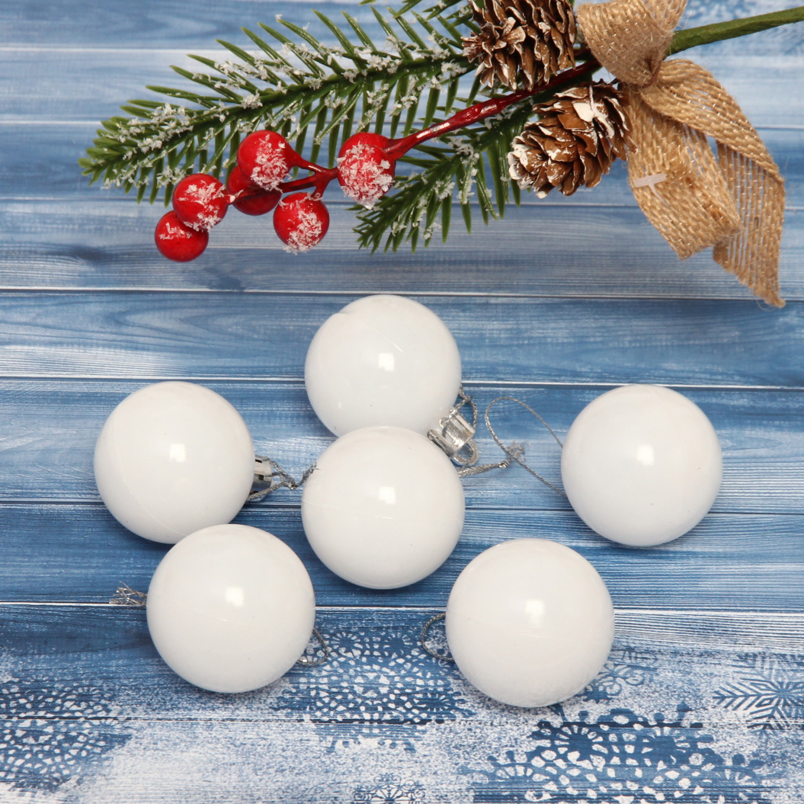 Новогодние шары 4 см (набор 6 шт) "Глянец", белый