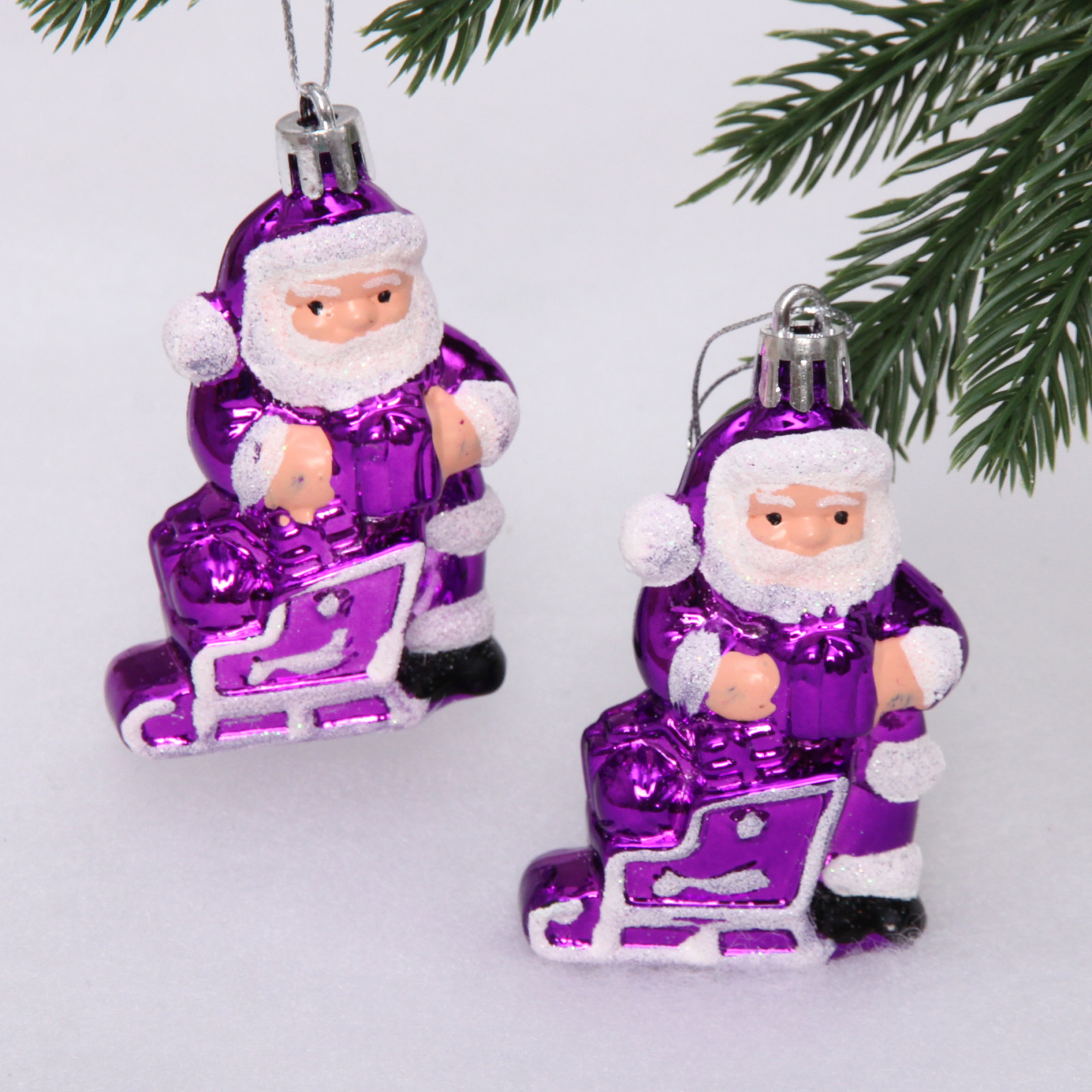 Елочные игрушки "Дед Мороз с подарком" 6,5 см (набор 2 шт), Фиолетовый
