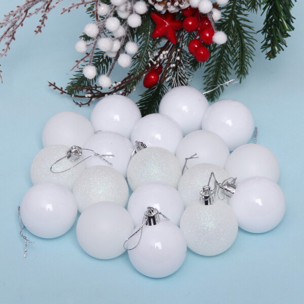 Новогодние шары 5 см (набор 24 шт) "Микс фактур", белоснежный