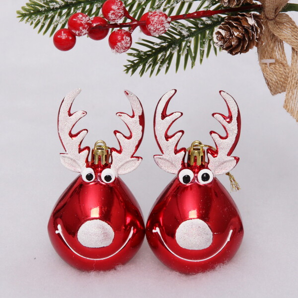 Ёлочная игрушка "Счастливый лось" 13 см (2 шт), красный
