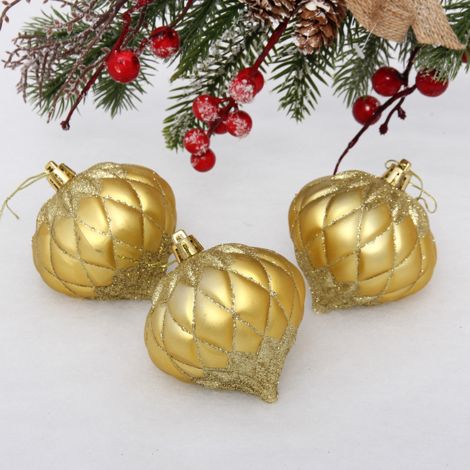 Ёлочные игрушки "Юла" 8 см (набор 3 шт), золото