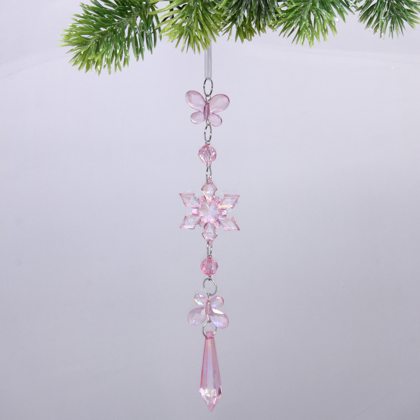 Подвеска "Хрустальная снежинка" 4,5*22 см, Розовый
