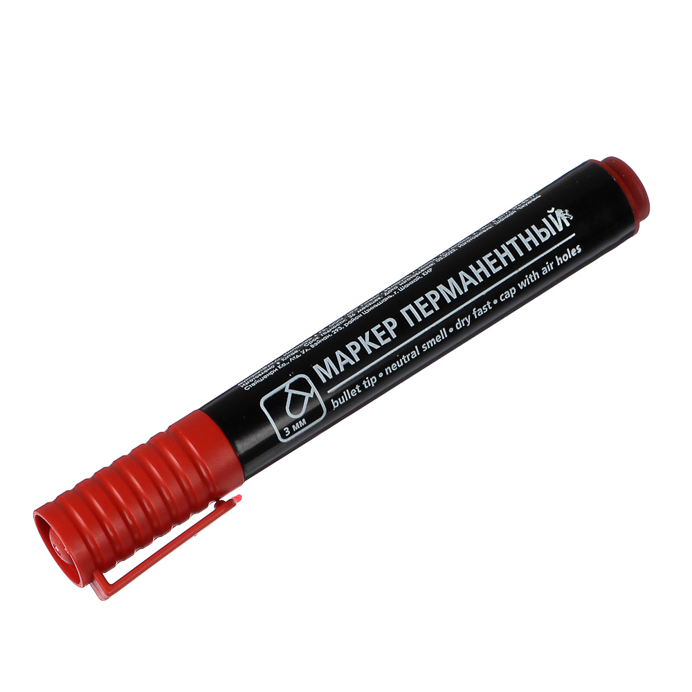 Маркер перманентный красный, пулевидный наконечник, линия 3мм