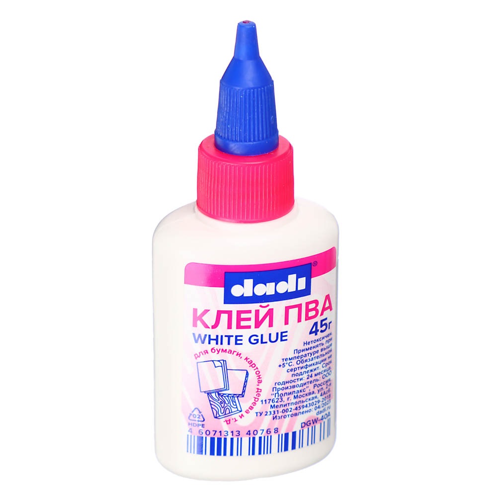 Клей ПВА 45 гр в пластмассовой бутылочке с дозатором