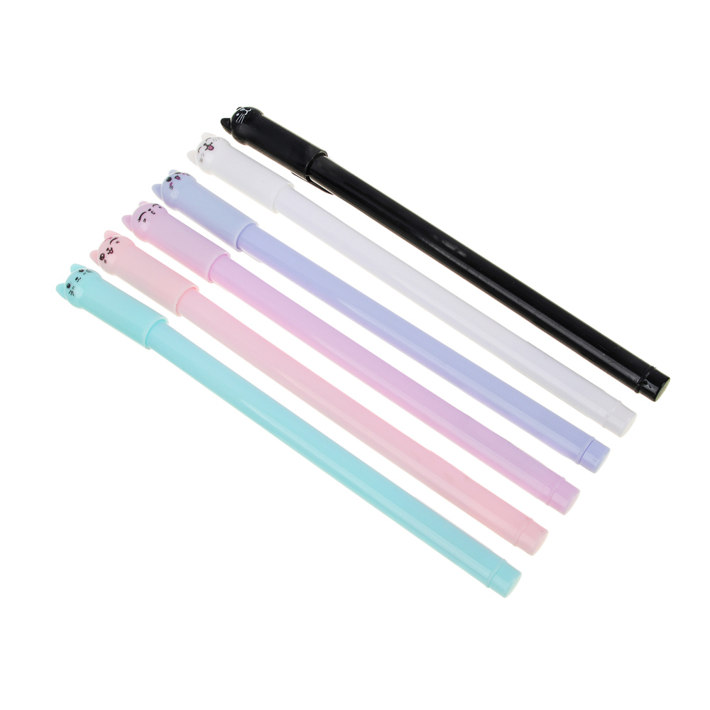 Ручка гелевая синяя, колпачок в форме котика с хвостом, 6 цветов корпуса