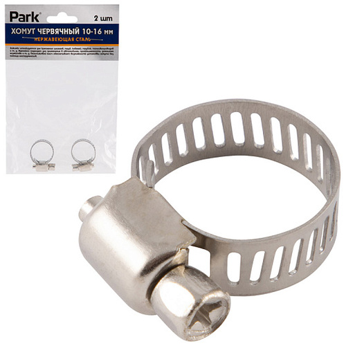 Хомут червячный, 2шт, 10-16 мм, нержавеющая сталь