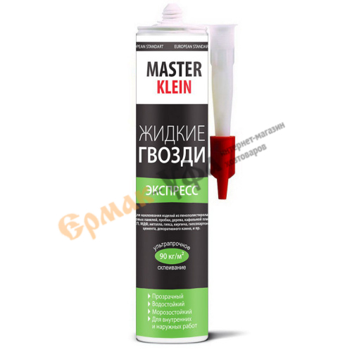 Клей жидкие гвозди Мастер Кляйн Экспресс, прозрачный, для наклеивания изделий из пенополистирола, стеновых панелей, пробки, дерева, кафельной плитки, ДСП, МДФ, металла, гипса, кирпича, гипсокартона, цемента, декоративного камня
