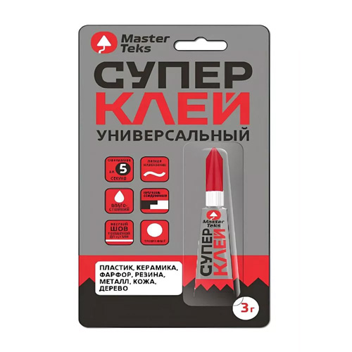 Супер-клей MasterTeks цианокрилатный универсальный 3 г, прозрачный