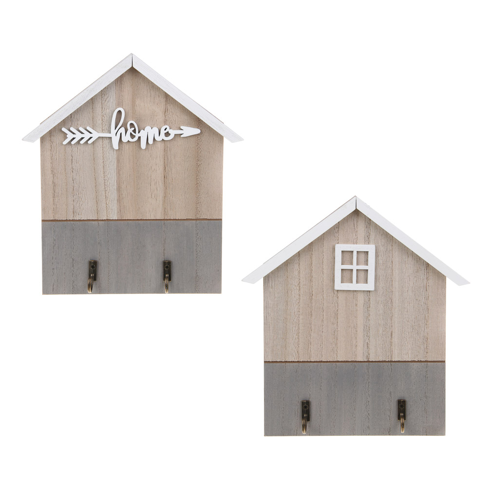 Ключница открытого типа в виде милого домика с двумя крючками - идеальное решение для хранения ключей в порядке и всегда под рукой! Обладает рядом преимуществ: компактный размер 21,5x19,5x3 см, прочный материал изготовления - МДФ, оригинальный дизайн, крепкие металлические крючки. Украсьте свой дом этим стильным и удобным аксессуаром и забудьте о потерянных ключах!