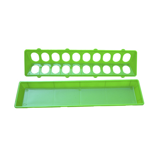 Кормушка для перепелов - верхний край кормушки защищен разделительной решеткой. Прутья решетки, выгнутые наружу под прямым углом не позволяют птице наступать на корм. Удобно открывается, легко моется и дезинфицируется.