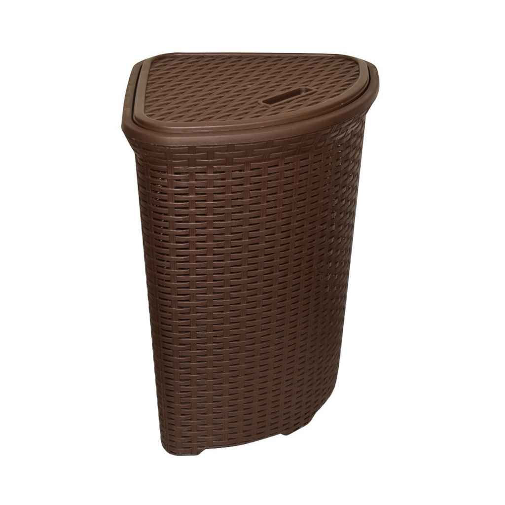 Корзина д/белья с крышкой УГЛОВАЯ 60л РОТАНГ коричневая
