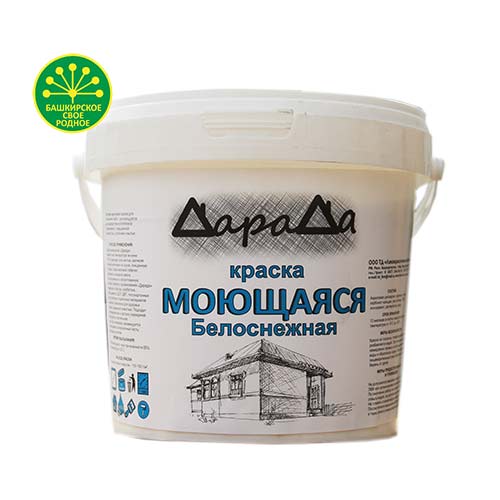 Краска водостойкая 1,4кг, ДАРАДА, ГОСТ акриловая белоснежная моющаяся, 12/12