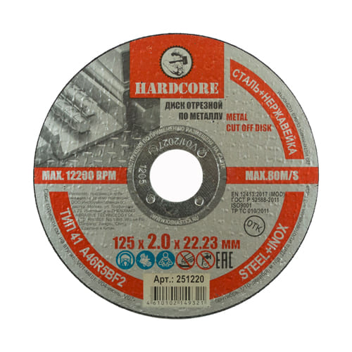 Диск отрезной по металлу/нержавеющей стали "Hardcore" (125 х 2,0 х 22,23 мм)