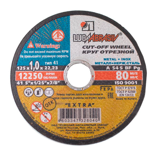 Круги отрезные по металлу и нержавеющей стали 125х1,0х22 (*25), ЛУГА