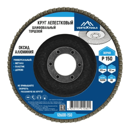 Круг лепестковый торцевой 125 мм Р150, vertextools 12600-150