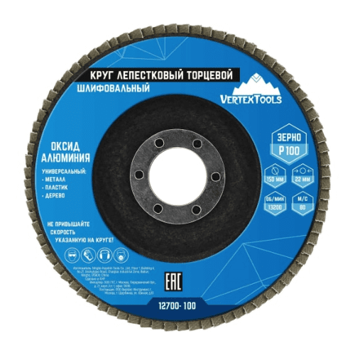 Круг лепестковый торцевой 150 мм Р100, vertextools 12700-100