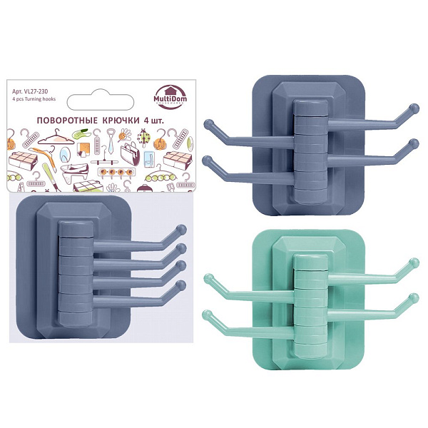 Поворотные крючки. 4 шт. Размер 7,5х6 см. 2цв
