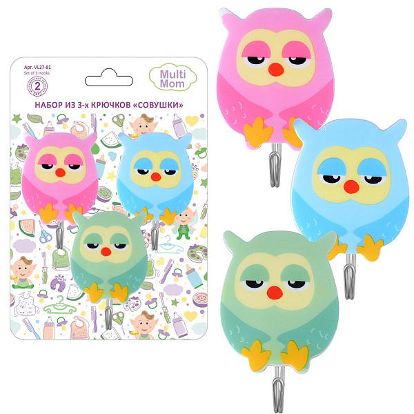 Набор из 3-х крючков "Совушки". Размер 7,5х2х4,2 см.