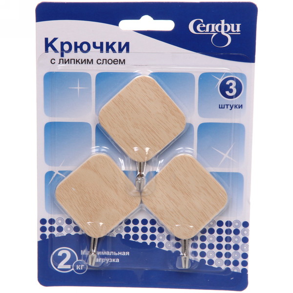 Крючки в наборе 3шт на липком слое "ИДЕЯДОМА", форма ромб, принт светлое дерево, нагрузка 2кг