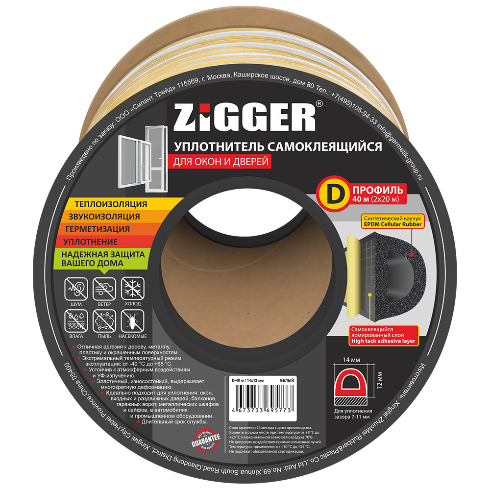 Уплотнитель ZIGGER D 14*12 бухта 40 м. белый 06-16-87 (6)