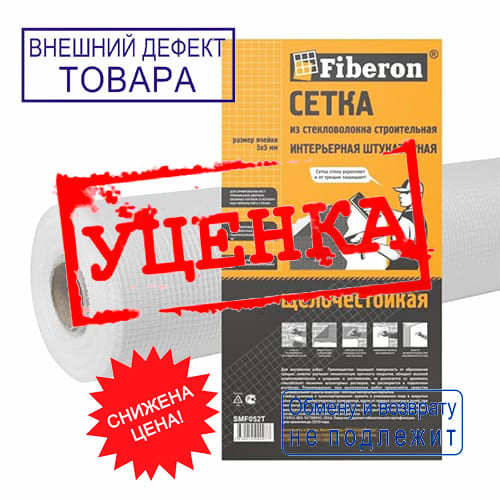 яяяСетка строит.интерьерная ШТУКАТУРНАЯ 1000мм х 50м белая, 5х5, Fiberon SMF053T УЦЕНКА (нетоварный вид)