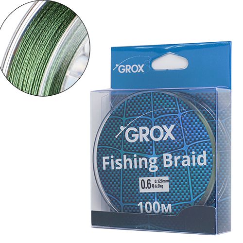 Плетенный шнур для рыбалки леска плетенка GROX 4X 0,12х100м 6,8кг, 1/500